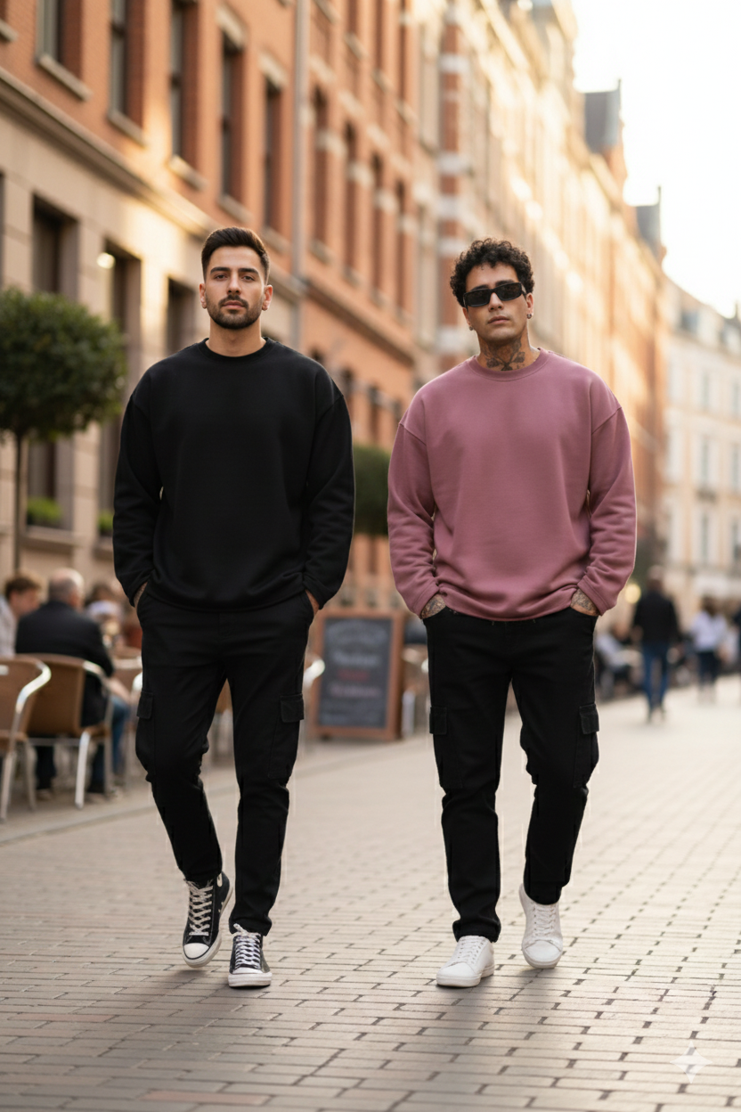 Минималистичен oversized суичър с изчистена линия и комфортна кройка. Изработен от висококачествен памучен микс, който осигурява мекота, издръжливост и отлична форма при носене. Подходящ за ежедневни визии, layering и all-season стил.